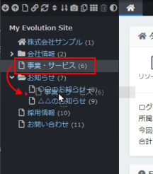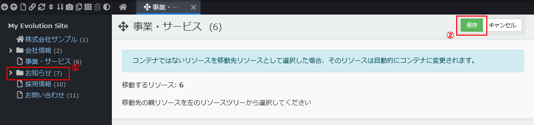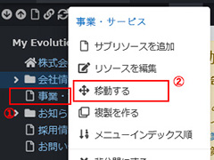 管理画面にて、ページ(リソース)を移動する方法です。